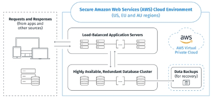 • Application servers and database servers for JourneyApps run in a virtual private network on Amazon Web Services (AWS).